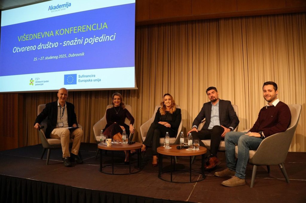 Akademija socijalne skrbi okupila više od 500 stručnjaka sustava socijalne skrbi iz cijele Hrvatske i od 25. do 27. studenoga 2025. uspješno je održala svoju prvu višednevnu konferenciju pod nazivom ,,Otvoreno društvo – snažni pojedinci”. Tijekom tri dana izlagači, panelisti i sudionici zajednički su promišljali o temama ključnima za razvoj modernog, inkluzivnog i povezanog sustava podrške.